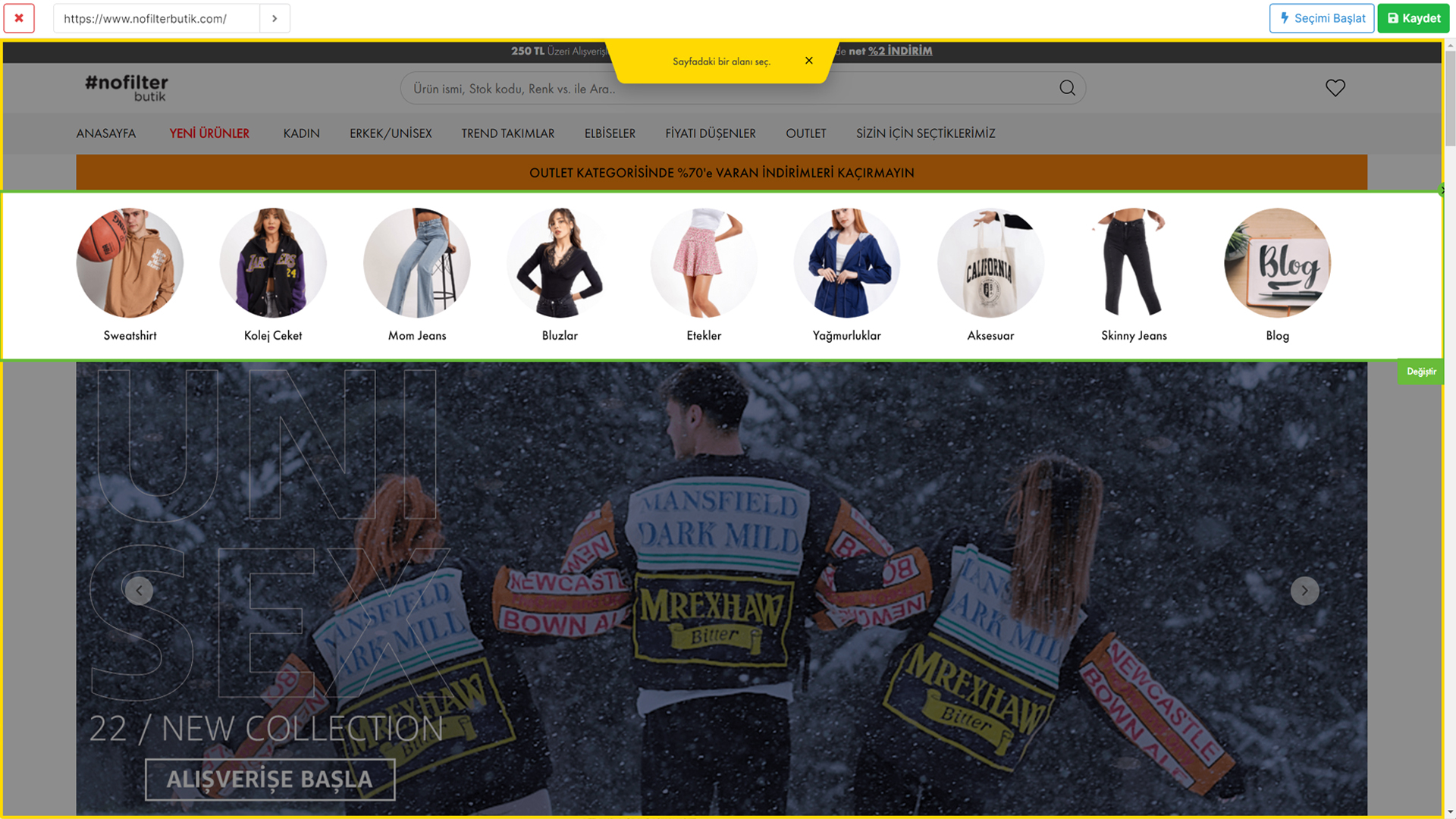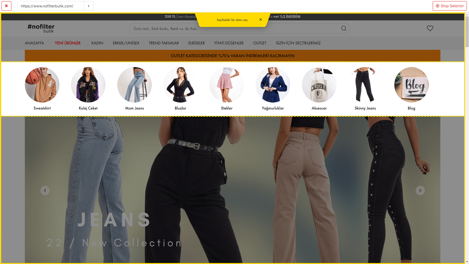 If the URL you entered in the location selection screen is not loading, it is due to your site preventing external loading. In such cases, you should choose one of the default locations or manually write the correct selector.