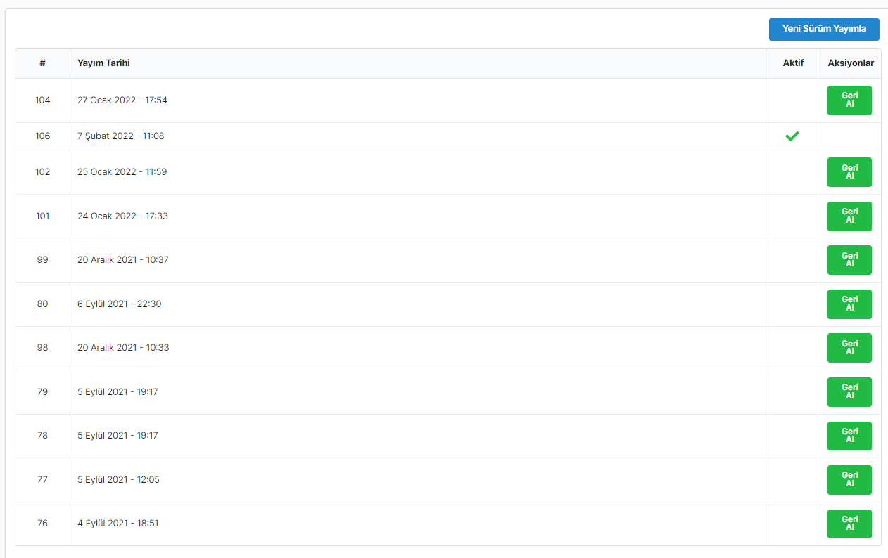 Publish On the ChatBot Deployment screen, you can create a new version based on the latest state of the bot you've created and deploy it directly live. Past versions are listed on this page with their respective dates, and if desired, you can roll back to an older version by selecting 'Revert' and deploying it live.